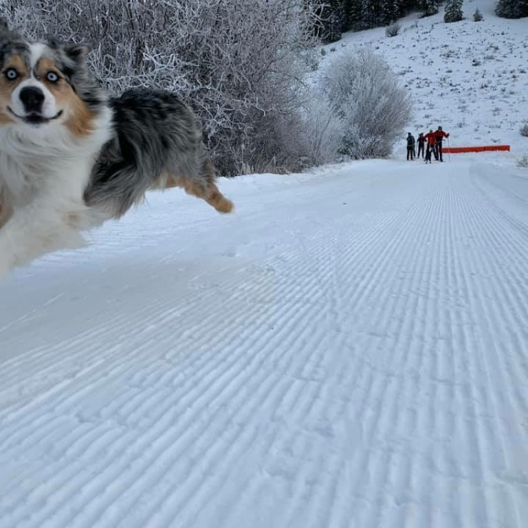Methow Trails proudly allows dogs on selected trails in the Methow Valley. In order to keep our four-legged facilities top-notch for both dogs and skiers, Methow Trails has a dog pass program. Dog owners must purchase a $50 annual pass at the Methow Trails office or a $10 day pass from any ski pass vendor and agree to the “Conditions of Use”. All dogs must wear their pass at all times while on the ski trails. Funds from the dog pass program help Methow Trails maintain and enhance the skiing infrastructure. We groom about 40 km of dog-friendly trails in the system. Check out our trail maps or app for details.