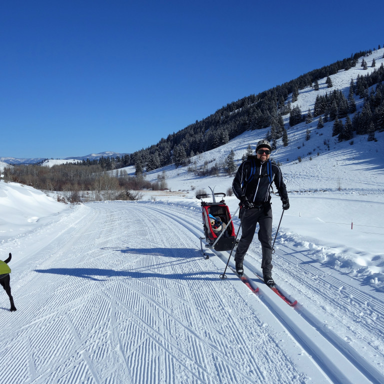 Try a pulk! Child ski carriages come in lots of different shapes and sizes these days, and they make it easy and comfortable for parents to get out on the trail while the little one takes a snooze. Pulks/ski trailers can be rented at most ski rental shops. Call ahead to check availability.