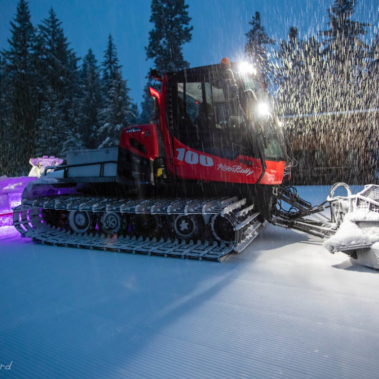 We typically have four to five groomers out nightly between 8 p.m. and 8 a.m. On weekends, holidays, and Wednesdays we groom all 200+ kilometers of trails with few exceptions. Tuesdays and Thursdays are typically lighter days when we may only get to 100 kilometers of trail, prioritizing the most frequently-skied trails. Big Valley is groomed on Tuesdays, Thursdays, and one day on the weekend.