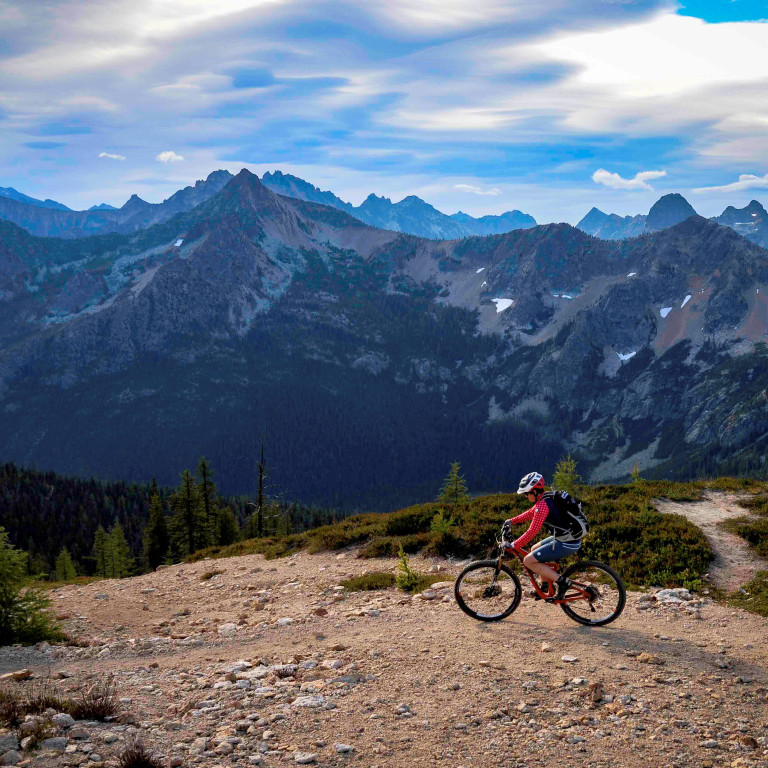 - Cutthroat Pass - This 11-mile, singletrack ride takes you through stunning alpine terrain. The trail between the trailhead and Cutthroat lake is popular with hikers, runners, and equestrians, so ride in control. The ride is an out and back, gaining 2,300 feet. To avoid the crowds, consider doing this ride midweek or late in the day. Distance: 11 miles. Northwest Forest Pass required.
