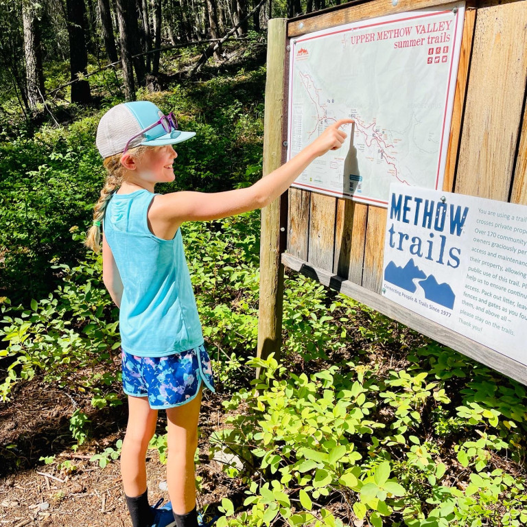 - Mazama 10km Loop - This gently rolling, mostly forested loop trail is a great option for kids who aren’t quite ready for the single track experience but are still up for a slightly longer ride. Treats from the Mazama Store are an added bonus when you’re done. This trail travels along the Founders and Goat Creek trails and can be ridden in either direction. Please park in the Methow Trails trailhead parking lot. Distance: 6 miles.