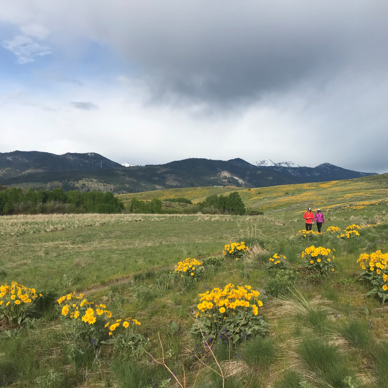 - Lewis Butte - This is one of the first trails to melt out in the spring and becomes a breathtakingly beautiful carpet of balsam root by the end of April or early May. Lewis Butte and Rizeor Lake were the focus of the 2018 and 2019 Methow Valley Trails Collaborative Save-A-Trail Projects. Located on WDFW Methow Wildlife Area land near Winthrop, these trails are popular destinations for runners, bikers, equestrians, and birdwatchers. Dogs must be leashed April 1-July 31. Discover Pass required.