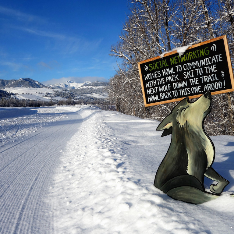 WildSide trails appeal to slightly older kids (6-12) and blend nature facts with playful skill building on skis through engaging challenges that the panels suggest. WildSide panels are found on the Mazama trails on Inn Loop and out of the Spring Creek Ranch Trailhead in Winthrop.