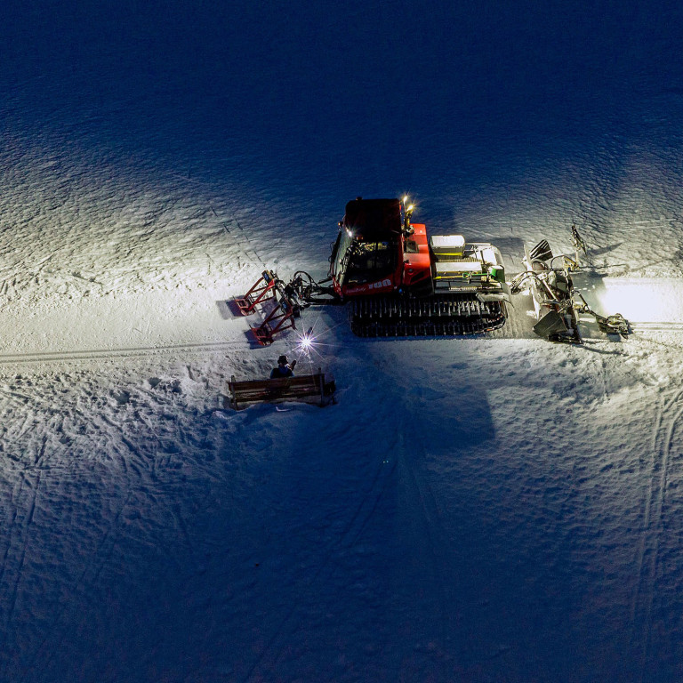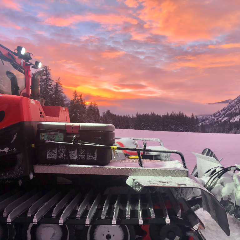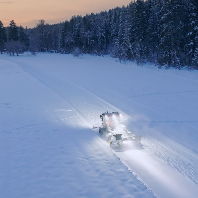 We typically have four to five groomers out nightly between 8 p.m. and 8 a.m. On weekends, holidays, and Wednesdays we groom all 200+ kilometers of trails with few exceptions. Tuesdays and Thursdays are typically lighter days when we may only get to 100 kilometers of trail, prioritizing the most frequently-skied trails. Big Valley is groomed on Tuesdays, Thursdays, and one day on the weekend.