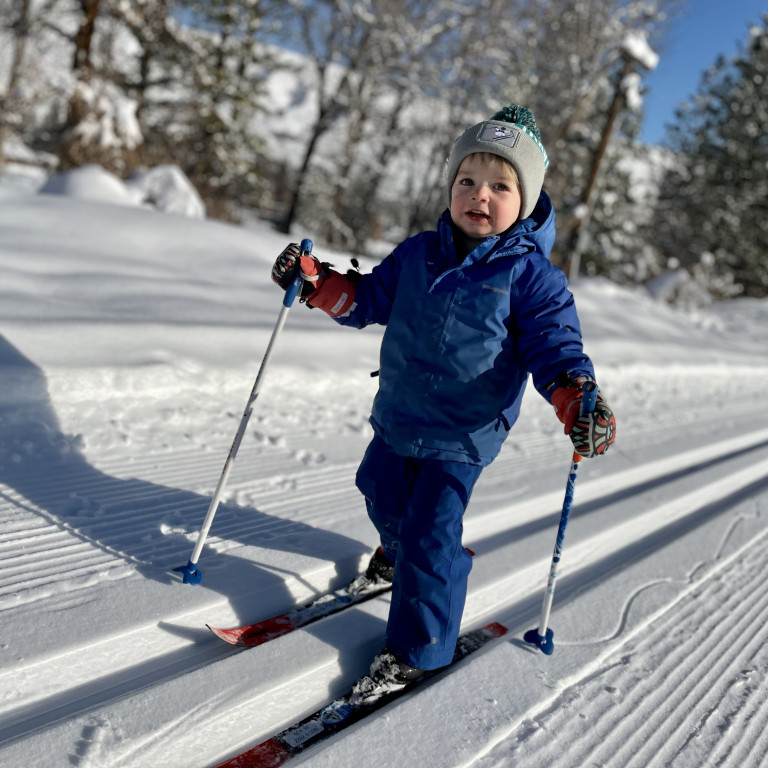 Try a pulk! Child ski carriages come in lots of different shapes and sizes these days, and they make it easy and comfortable for parents to get out on the trail while the little one takes a snooze. Pulks/ski trailers can be rented at most ski rental shops. Call ahead to check availability.