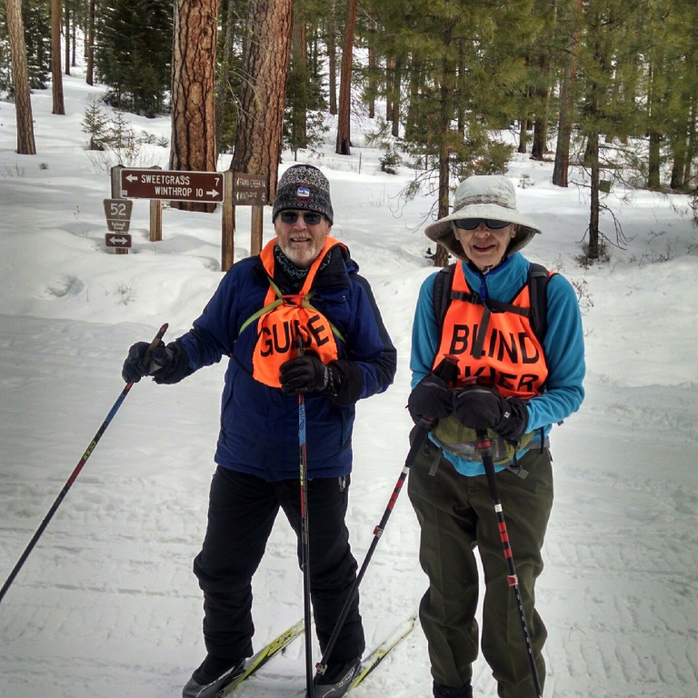 Methow Trails is proud to host a Ski for Light regional event each winter. This event brings vision- or mobility-impaired skiers and volunteer guides to the trails for a week of skiing and camaraderie. During this event we groom side-by-side classic tracks on select trails to allow guides and participants to ski together. For more information or to volunteer, check out our events page for specifics or contact Methow Trails.