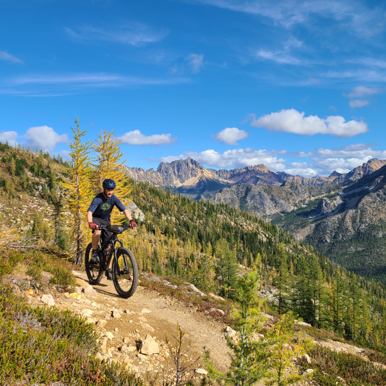 It doesn't get much better than alpine riding through the larches on Cutthroat Pass. Photo: Ryan Devane